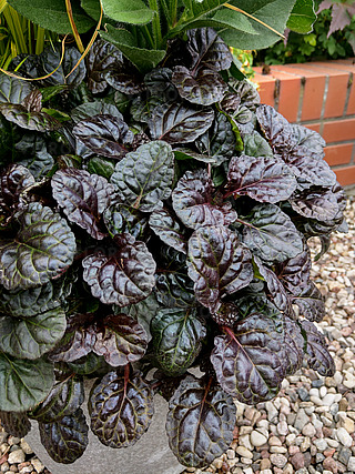 Dąbrówka rozłogowa ‘Black Scallop’ (Ajuga reptans) – okrywowa bylina o niemal czarnych liściach