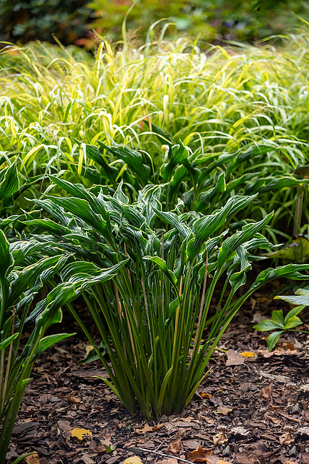 zestawień z funkiami o większych, szerokich liściach (kontrast form!),