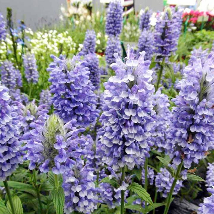 Atrakcyjny gatunek kocimiętki nieco podobny do popularnej kocimiętki Fassena jednak kwiatostany kocimiętki żyłkowanej są bardziej zwarte. Mają kłosowaty kształt i wyprostowaną formę z gęsto osadzonymi, niebieskimi kwiatami. Kocimiętka żyłkowana 'Blue Moon' kwitnie bardzo obficie od czerwca do września, przycięcie kwiatostanów po kwitnieniu wymusza wytwarzanie kolejnych kwiatów. Kwitnące kępy osiągają około 40 cm wysokości, okres kwitnienia jest długi, a same kwiaty pojawiają się w bardzo dużych ilościach.