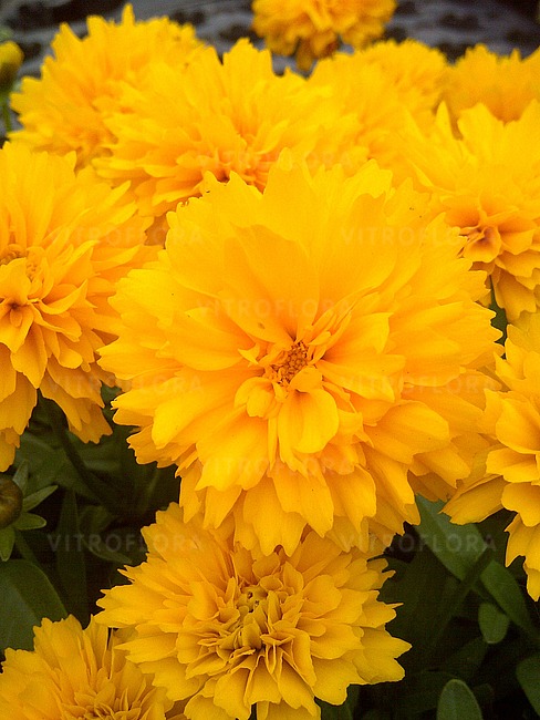 Odmiana z serii "Solanna" tworząca niską kępę jasnozielonychliści. Na licznych, wzniesionych szypułach osadzone sąpodwójne, okrągłe i pełne kwiaty w kolorze złotożołtym,wyglądające niczym złociste pompony. Kwitnie od wczesnejwiosny do późnej jesieni. Świetna na obwódki,do pojemników oraz na kwiat cięty.Bardzo atrakcyjna dla motyli.