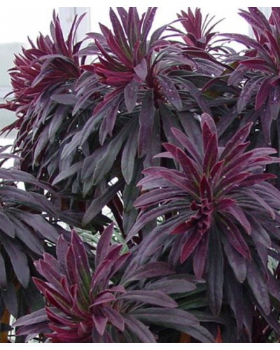 Atrakcyjna, zwarta odmiana wilczomleczu o intensywnieczerwonych liściach, które jesienią przebarwiają sięna bordowo. Doskonała do nasadzeń w gruncie a takżew pojemnikach.