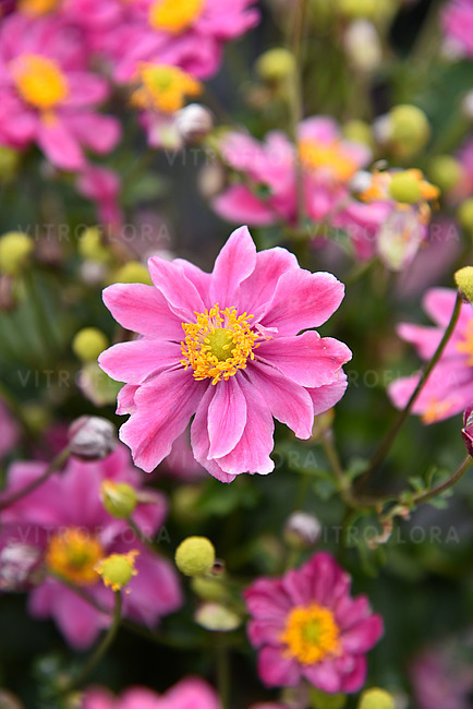 Ciemnoróżowy o pełnych kwiatostanach. Kwitnie jak inne japońskie anemony późnym latem i jesienią - od sierpnia do pazdziernika. Preferuje stanowisko słoneczne i półcieniste. Rozrasta się w ogrodzie przez rozłogi.