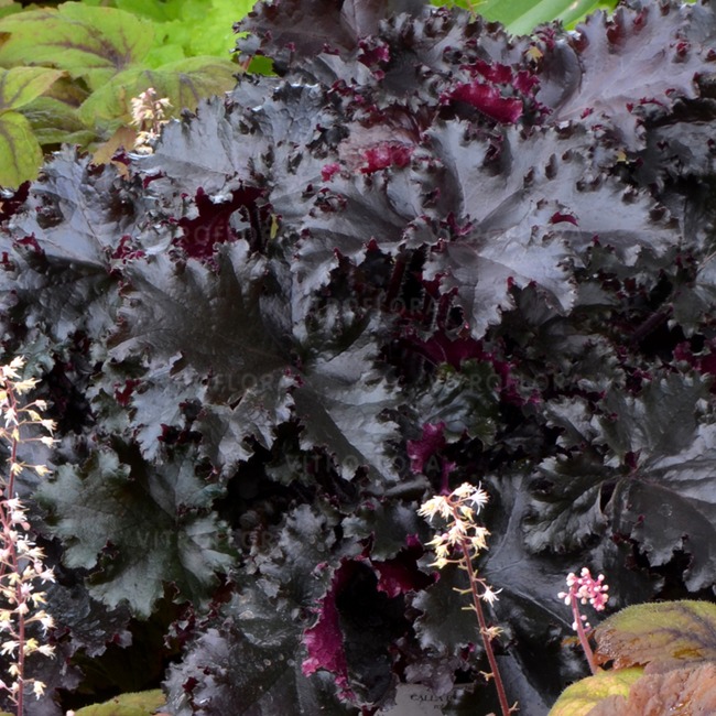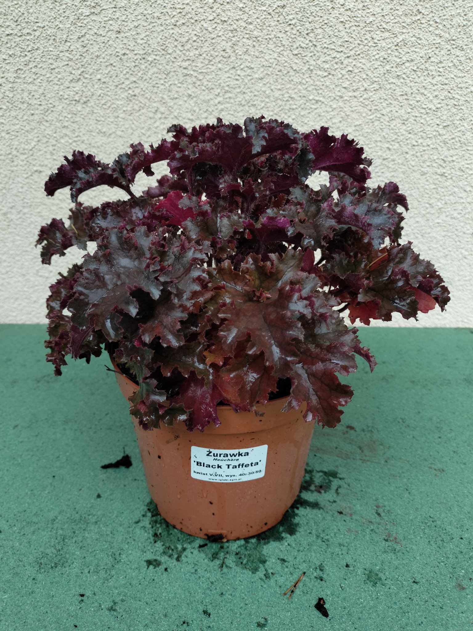 Odmiana tworząca gęste kępy o wypełnionej formie. Kwiaty białe, mocne, na ciemnych krótkich szypułach. Posiada ciemne, prawie czarne liście, których błyszczącai jedwabista faktura i fryzowany, zmierzwiony brzeg blaszkisprawiają wrażenie, jakby żurawka przybyła wprostz paryskiego wybiegu mody. Ta elegancka heucheraodznacza się wysoką wytrzymałością i żywotnością,doskonale sprawdzi się jako kontrast w obsadzeniachrabatowych oraz pojemnikach.