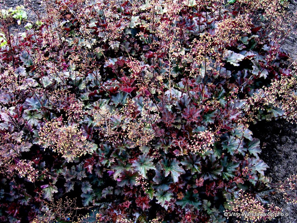 Odmiana imponuje wielkością osiąga około 60 cm wysokości. Jej intensywne wybarwienie liści w kolorze brązowo - czerwonym daje bardzo wyrazisty akcent między zielonymi roślinami. Kwitnie dość wcześnie IV - VI, kwiaty w kolorze kremowym. Jest rośliną zimozieloną odporną na mróz. Odmiana ta przeznaczona jest uprawy w miejscach półcienistych, słonecznych. Ważne jest aby w czasie suszy regularnie podlewać. Jesienią należy ściółkować. Jeżeli zima jest bezśnieżna należy roślinę okryć np. gałązkami świerkowymi.