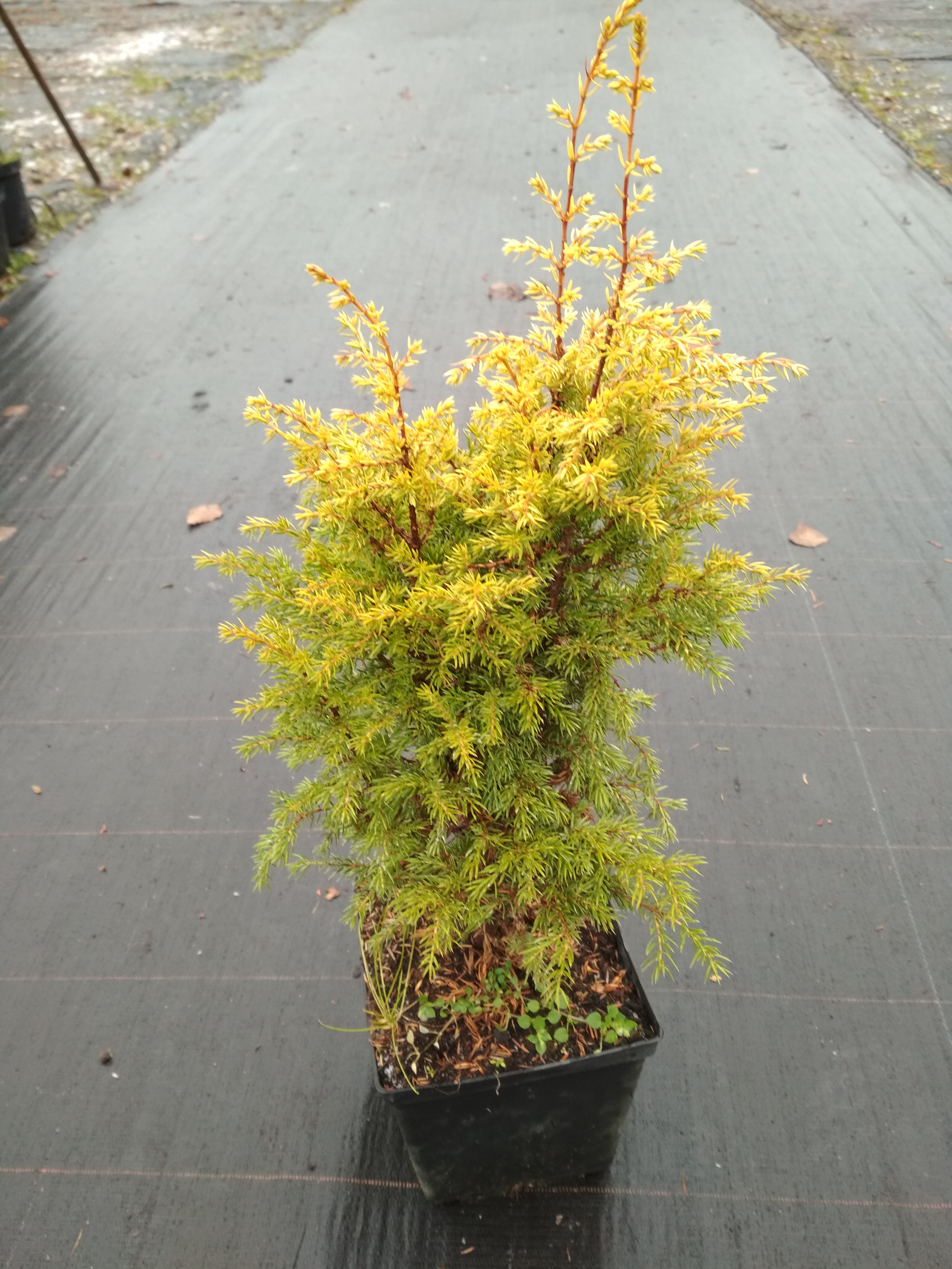 Jałowiec pospolity ‘Cold Cone’ to zimozielony krzew iglasty o bardzo regularnym, wąskostożkowym pokroju, wyróżniający się zwartą formą oraz intensywnie zielonym ulistnieniem. Pędy są sztywne, gęsto ułożone i wyraźnie skierowane ku górze, co sprawia, że roślina zachowuje elegancki, uporządkowany wygląd przez cały rok. Odmiana ceniona za wysoką odporność na mróz oraz stabilny wzrost.