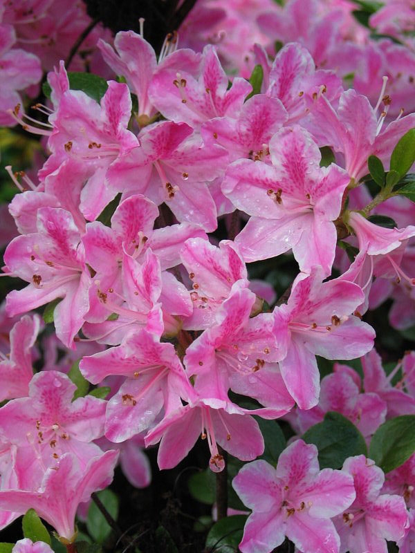Azalia japońska ‘Karmesina Rosea’ to niska, gęsta odmiana o bardzo efektownych, intensywnie różowych kwiatach z karminowym tonem. Kwitnie niezwykle obficie wiosną, tworząc zwarte poduchy niemal całkowicie pokryte kwiatami.