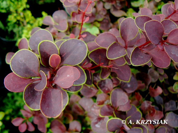 Berberys Thunberga ‘Golden Ring’ (Berberis thunbergii) – purpurowy berberys z wyraźną złotą obwódką liści
