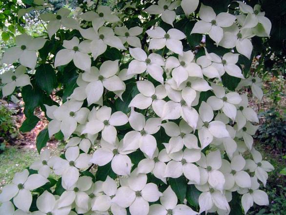 Dereń kousa ‘Milky Way’ (Cornus kousa) – wyjątkowo obficie kwitnąca odmiana o białych podsadkach