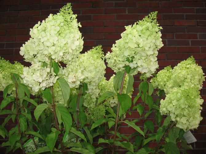 Kwiatostany są bardzo duże, szerokostożkowate, początkowo zielonkawo-białe, szybko przechodzą w czystą, śnieżnobiałą barwę, a pod koniec sezonu mogą delikatnie zaróżowieć. Odmiana wyróżnia się klarownym, jasnym kolorem, który doskonale rozjaśnia rabaty ogrodowe.