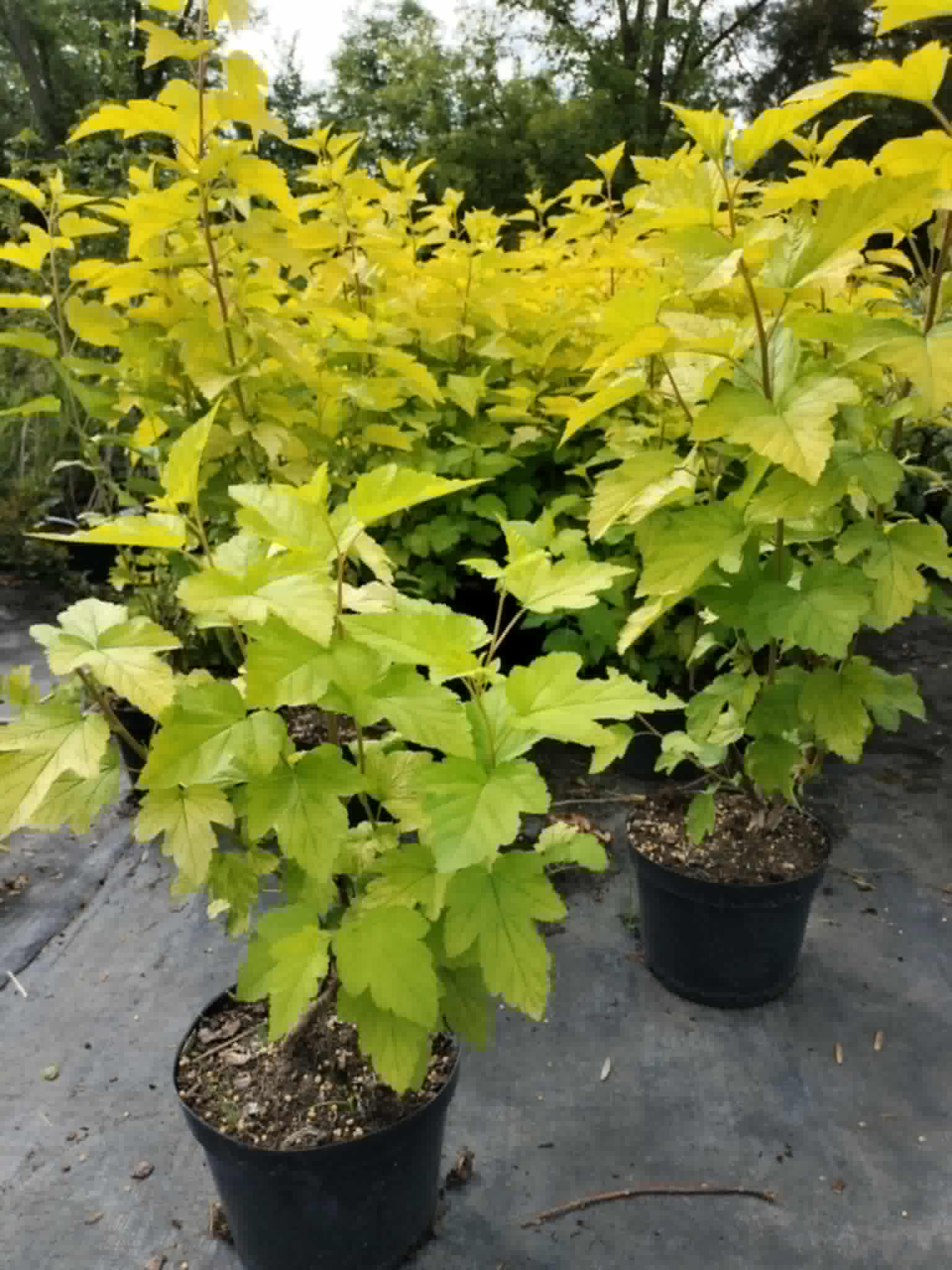 Liście są jasnożółte do złocistożółtych, młode przyrosty szczególnie intensywnie wybarwione. W półcieniu mogą przybierać jaśniejszy, zielonkawo-żółty odcień. Wczesnym latem krzew zakwita drobno, biało, tworząc półkuliste kwiatostany, które kontrastują z jasnym ulistnieniem. Po kwitnieniu pojawiają się dekoracyjne, pęcherzykowate owoce.