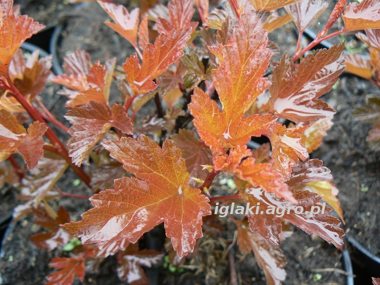 Pęcherznica ‘Diable d’Or’ ‘Mindia’ (Physocarpus opulifolius) – złocisto-pomarańczowa odmiana o zwartym pokroju