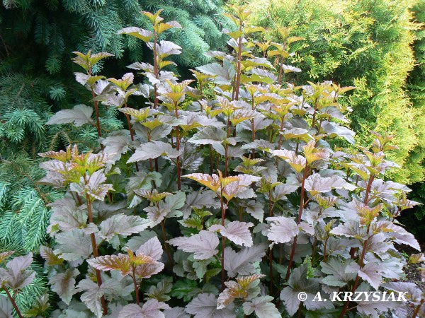 Pęcherznica ‘Diabolo’ (Physocarpus opulifolius) – ciemnopurpurowa odmiana o silnym wzroście