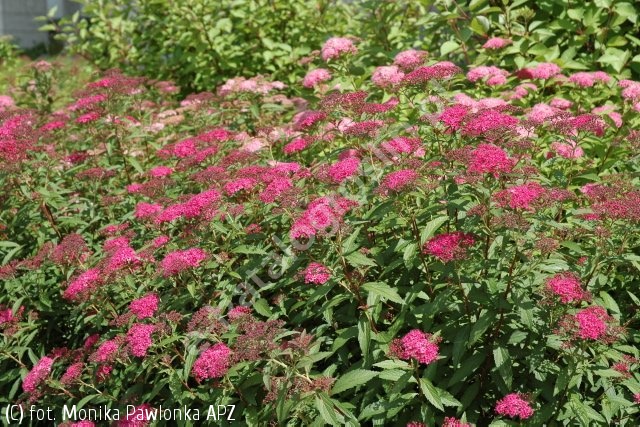 Tawuła japońska ‘Anthony Waterer’ (Spiraea japonica) – klasyczna odmiana o intensywnie różowych kwiatach