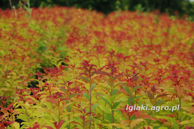 Tawuła japońska ‘Magic Carpet’ (Spiraea japonica) – niska odmiana o barwnych liściach i różowych kwiatach