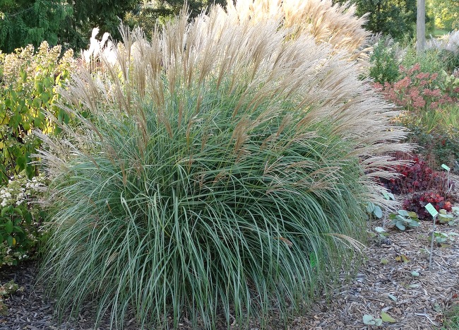 Późnym latem pojawiają się jasne, srebrzysto-beżowe kwiatostany, unoszące się subtelnie ponad liśćmi. Jesienią liście przebarwiają się na złociste i słomkowe odcienie, a zaschnięte wiechy pozostają dekoracyjne również zimą, nadając rabatom strukturę.