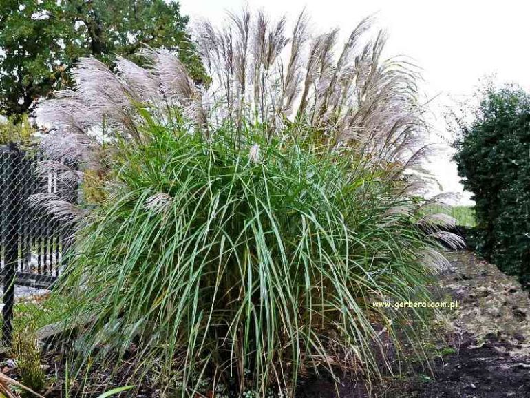Późnym latem nad kępą pojawiają się duże, puszyste kwiatostany, początkowo lekko różowawe, z czasem przechodzące w srebrzysto-beżowe. Jesienią liście przebarwiają się na złociste i słomkowe odcienie, a zaschnięte wiechy pozostają bardzo dekoracyjne zimą.