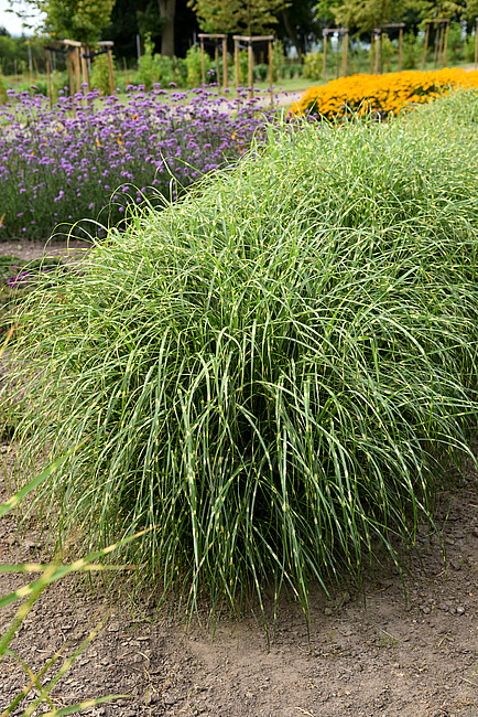 Miskant chiński ‘Little Zebra’ (Miscanthus sinensis) – kompaktowa odmiana o poprzecznie pasiastych liściach