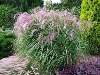 Miskant chiński ‘Red Cloud®’ (Miscanthus sinensis) – odmiana o intensywnych, czerwono-różowych kwiatostanach