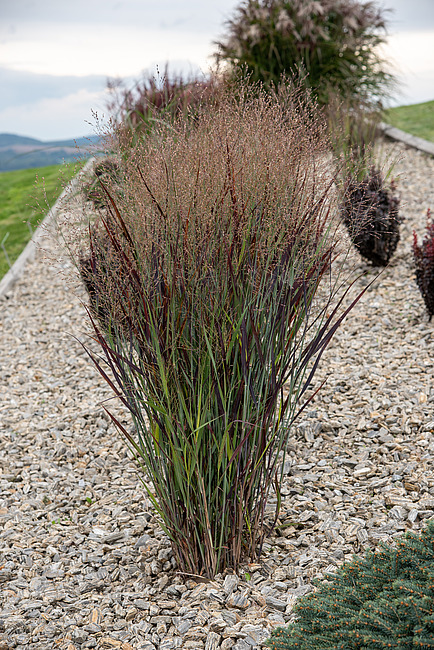 Proso rózgowate ‘Nosferatu’ (Panicum virgatum) – ciemno ulistniona odmiana o silnym, pionowym pokroju